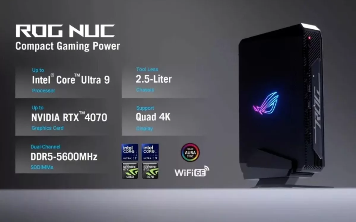 ایسوس در رویداد CES 2024 از اولین مینی پیسی NUC خود با نام ROG NUC رونمایی کرد. این دستگاه مجهز به جدیدترین پردازندههای اینتل است و عملکرد خوبی در اجرای بازیها خواهد داشت. پیشازاین، اینتل از توقف ساخت NUCهای خود خبر داده بود و فعالیتهای خود در این حوزه را به همراه شرکتهایی مانند ایسوس پیش میبرد.