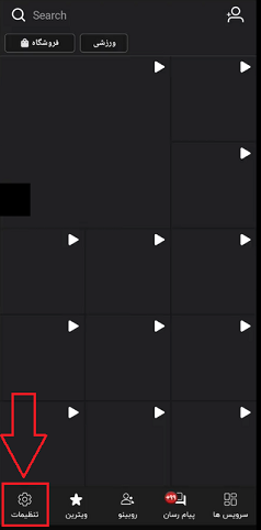 پس از این که وارد حساب خود شدید، در صفحه اول برنامه و از پایین صفحه به قسمت تنظیمات بروید.