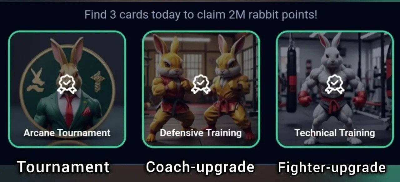 دقت کنید بازی Rockyrabbit را هر سه ساعت باز کنید امتیاز پروفیت را بگیرید و سریعا لول خود رو در تورنمنت ارتقا دهید هرچه زودتر بهتر کمبو کارت های ۲۴ ساعته را هم بگیرید.